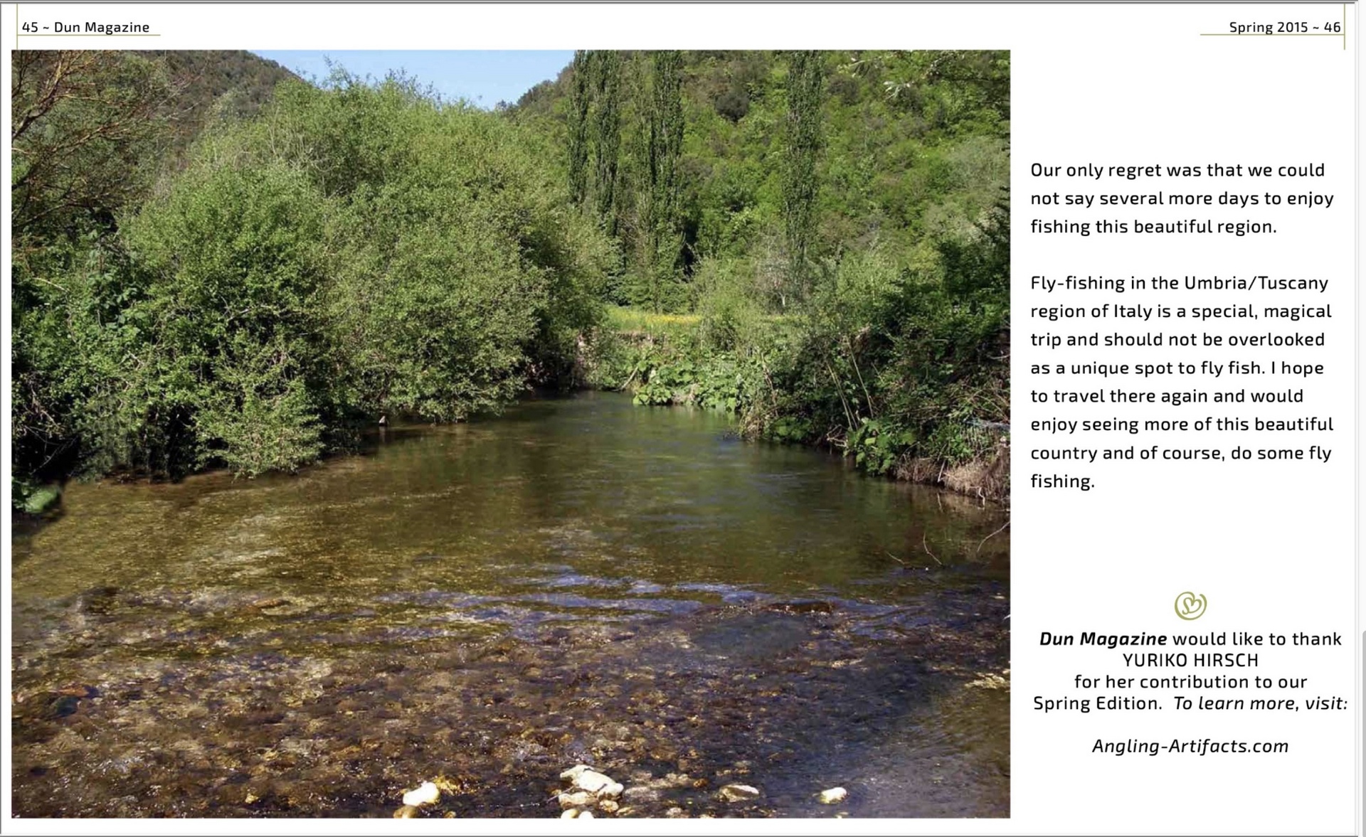 Fly fishing article written by Yuriko Hirsch for Dunn Magazine, Spring 2015